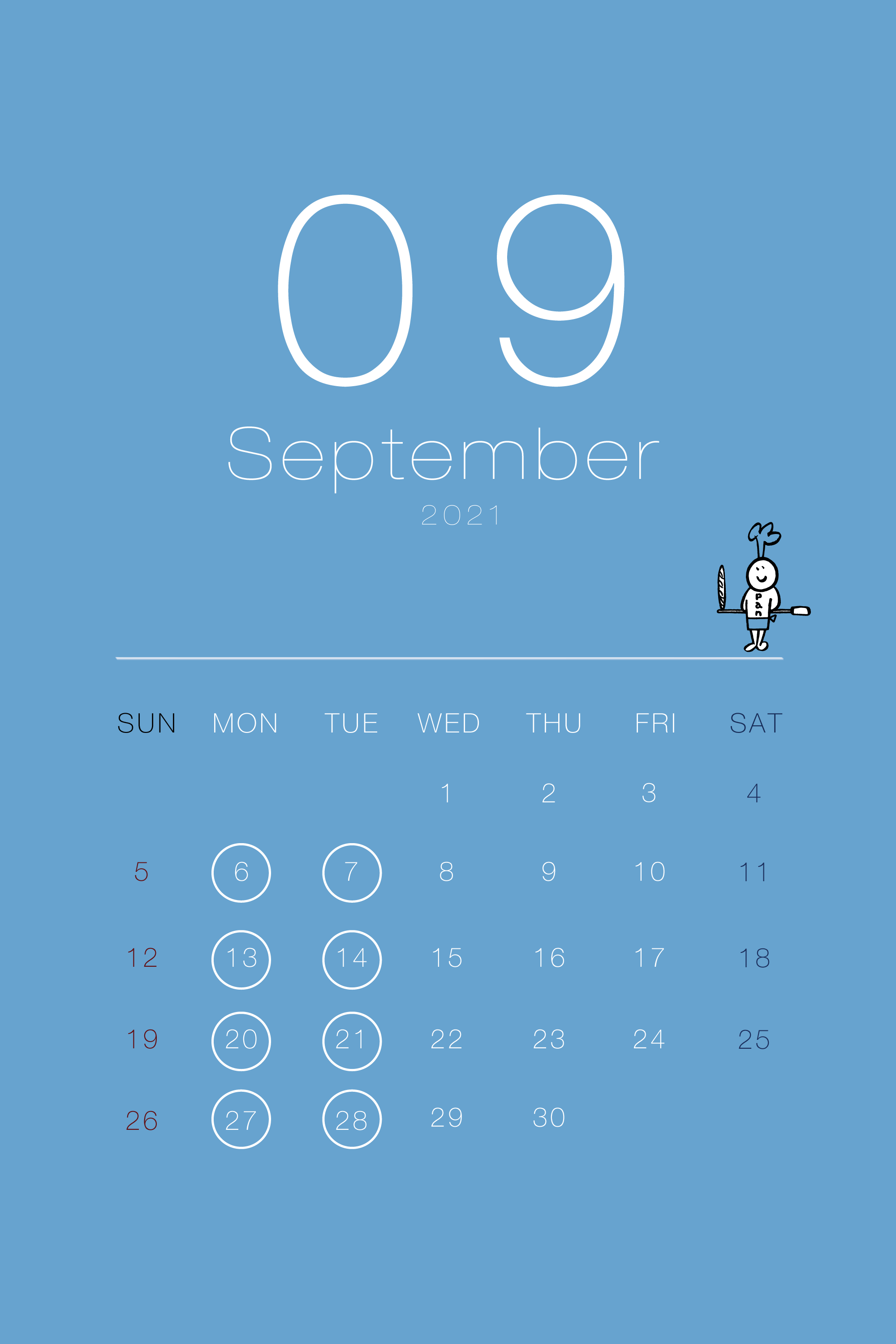 2021年9月の営業日 お知らせ Twitter Facebook0 はてブ0 LINE Pinterest 2021.08.31 おはようございます オパン です。 9月の営業日のご案内です。 月曜日、火曜日が定休日となります。 今月もよろしくお願いします。