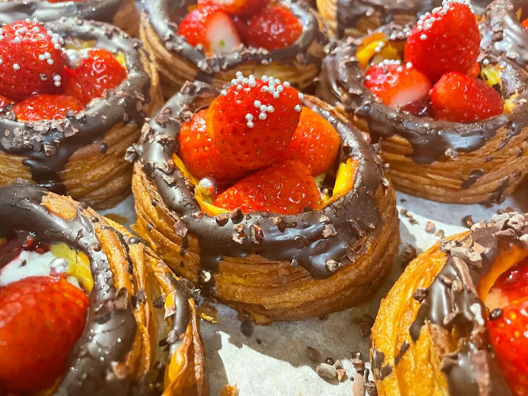 新しい季節限定デニッシュ「いちごのデニッシュ」「いちごとあんこサンド」とこの季節に美味しいいちごの商品ご用意しています。