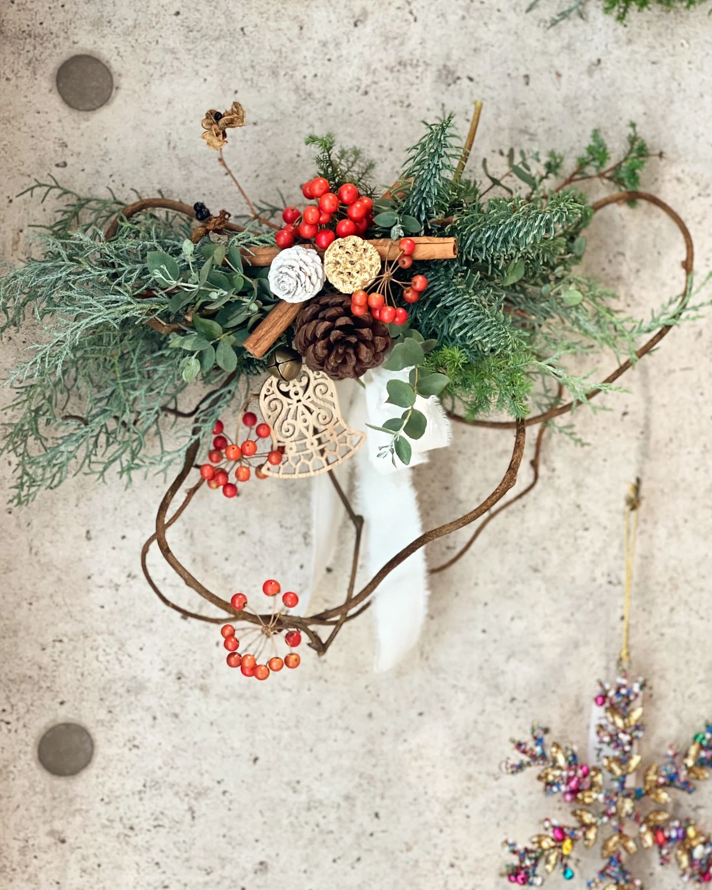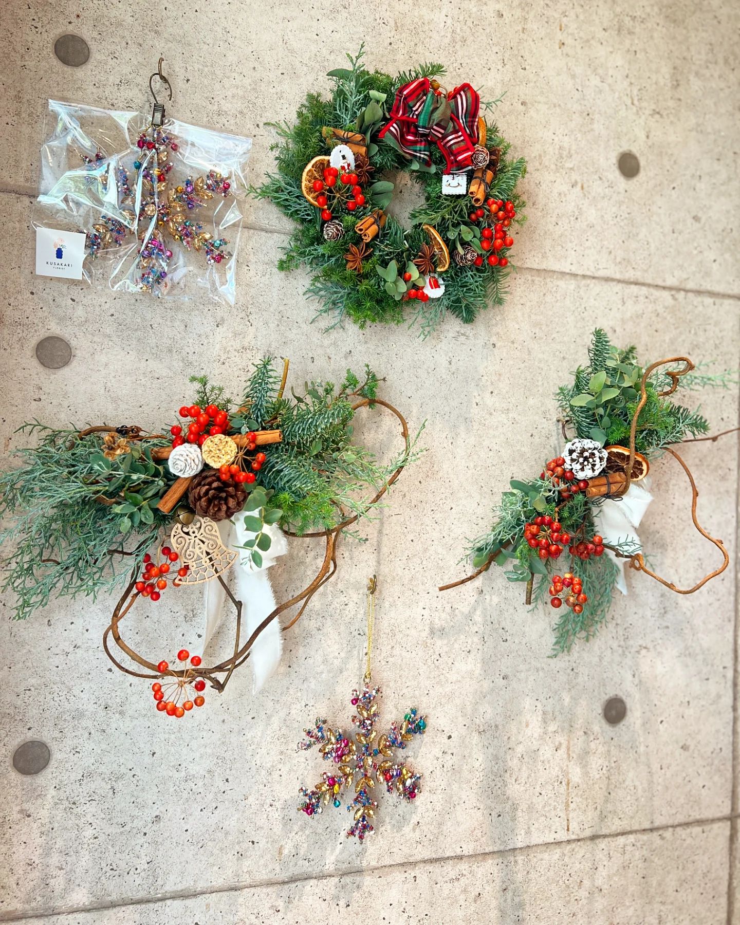 『本日より、少しですがリースとオーナメントを店内で販売させていただいてます。